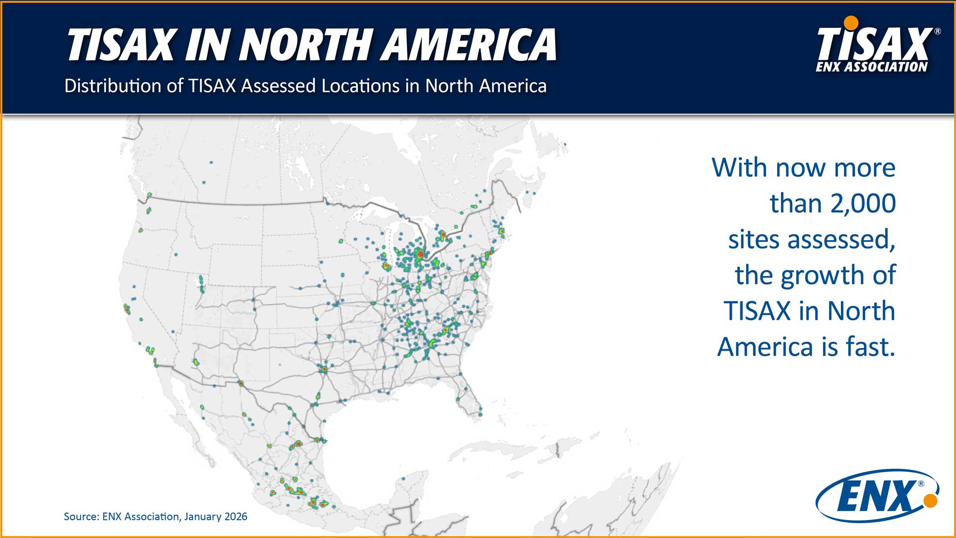 The geographic spread indicates that TISAX adoption in North America has moved beyond isolated early adopters. Instead, it is increasingly applied across diverse automotive, engineering and digital ecosystems, supporting consistent information security expectations throughout cross‑border supply chains.